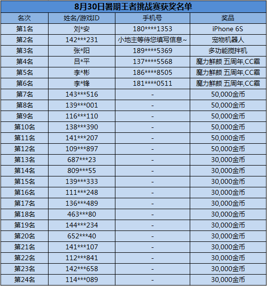 博雅斗地主8月30日“暑期王者挑战赛”的中奖名单出炉啦!