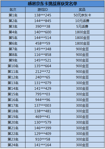 博雅斗地主“感恩京东卡挑战赛”的中奖名单出炉啦!