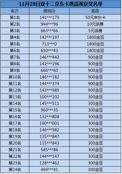 博雅斗地主“11月28日双十二京东卡挑战赛”的中奖名单出炉啦!